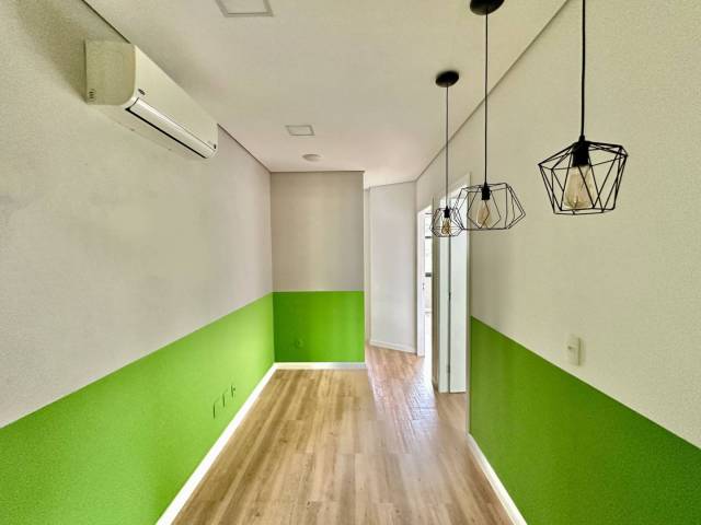 - 3 salas com janelas, vista para o fundo (área verde) ou lateral (rua).